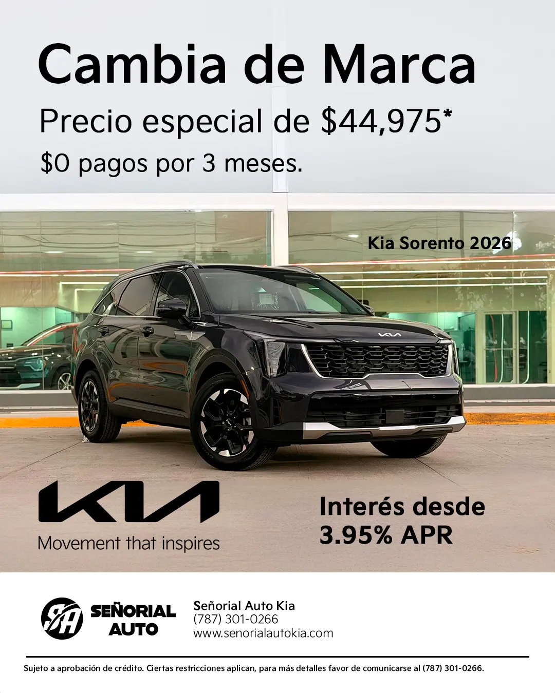 1) Kia Sorento S (MQS01-26) con precio final de $44,975.